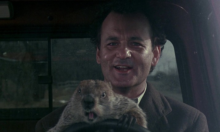 Шедевр Рэмиса работает как метафизическая притча об искуплении отчасти потому, что чудесно проработанный мизантроп Фил начинает свою историю в эмоционально мрачном состоянии. Перед камерой он неубедительно пытается скрыть ненависть к своей работе, коллегам, жизни и самому себе. Тело Фила может быть временно заперто на съемочной площадке в Пенсильвании, но в голове он уже сосредоточен на следующей должности, следующем повышении, следующей станции и городе, которые станут трамплинами для его безграничных амбиций. Как будто насмехаясь над его планами, телеканал отправляет Фила, его помощника-оператора Ларри (Крис Эллиот) и немного сумасбродного нового продюсера Риту (Энди МакДауэлл) в крошечный городок Панксатони, чтобы сделать сюжет о том, как местный сурок-пророк творит свою магию. Согласно традиции, если животное увидит свою тень и вернется в нору, штат обречен еще на шесть недель зимы. Если нет, это должно предвещать раннюю весну.