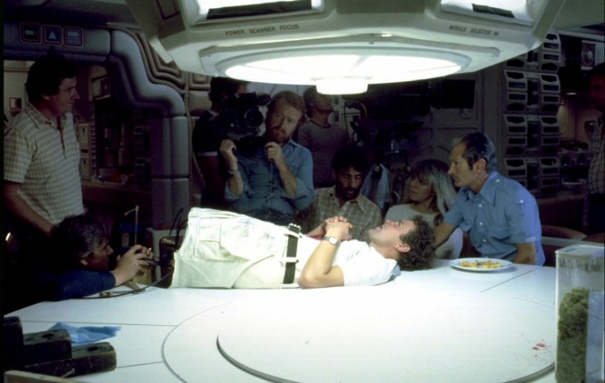 Особенность Ридли Скотта как режиссера состояла в том, что он не ограничивался только режиссерскими обязанностями. Он был везде: у окуляра кинокамеры, в монтажной, на площадке с актерами, в мастерской, где создавались макеты «Ностромо», и в студии, в которой строили декорации инопланетного корабля по эскизам Гигера. Мрачные интерьеры давили на психику актеров, которые порой находились на грани нервного срыва. Например, когда готовили сцену с «рождением» Чужого из груди Кейна, актеров отправили «покурить», так что кровавая сцена, снятая одним дублем, позже оказалась для них полной неожиданностью. При этом у Вероники Картрайт случилась самая настоящая истерика.