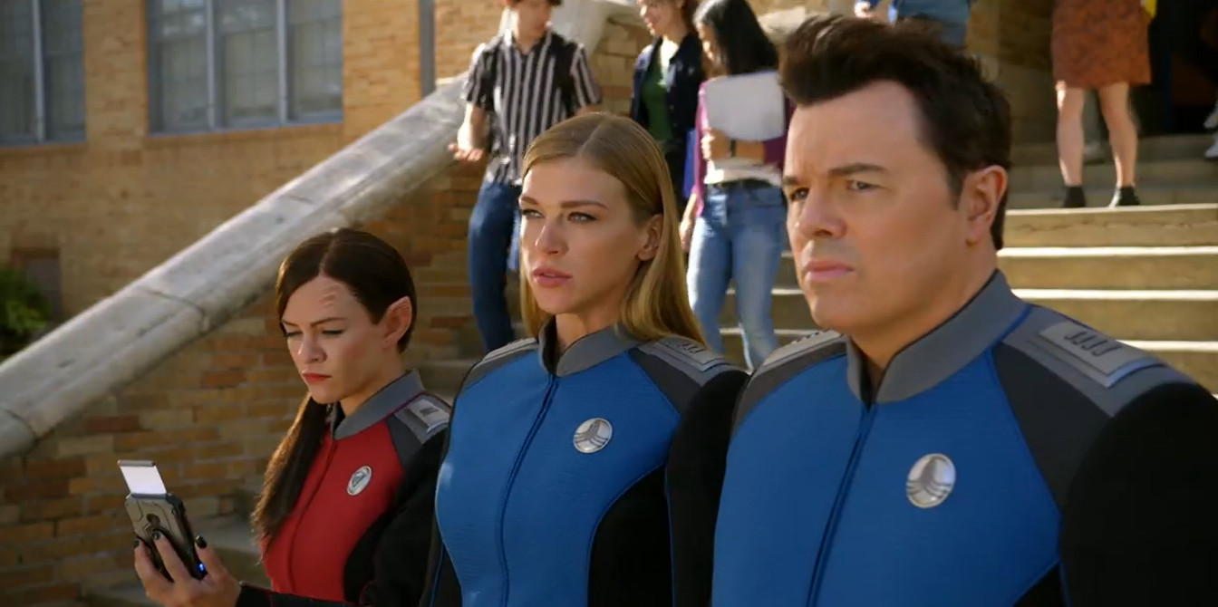 Сет МакФарлейн (Эд Мёрсер), Джессика Зор (Лейтенант Талла Кейяли), Эдрианн Палики (Келли Грейсон), 3 сезон 3 серия, «Орвилл» (The Orville)