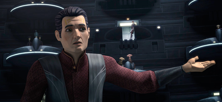 Узнав о Кловисе и украденных файлах, члены Банковского клана сообщают о произошедшем Дарту Сидиусу, в то время как прибывшие на Корусант сенатор со спутниками докладывают канцлеру о ситуации со счетами на Скипио. Канцлер поручает Падме расследовать это дело в паре с Кловисом, что сразу же вызывает ответную реакцию Энакина, ставящую под угрозу отношения между супругами. А между тем граф получает приказ помочь Рашу получить место главы Банковского клана, тем самым вернув его преданность сепаратистам.