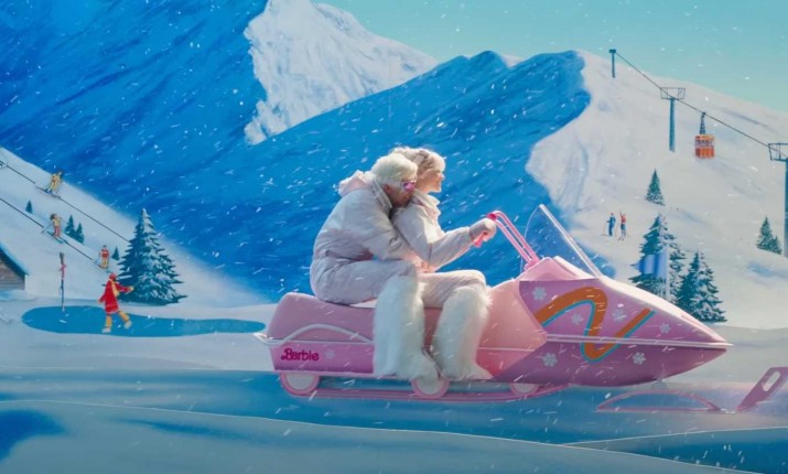 Зимняя одежда Кена — сплошной стиль, никакой функциональности. В одной из сцен Кен держится за Барби, когда она едет на снегоходе по горнолыжному курорту. Это подкрепляет идею о том, что Барби — главная, поскольку именно она управляет транспортным средством, а все, что может делать он, — держаться. Оба одеты в светло-розовые лыжные костюмы и пушистые белые ботинки без каких-либо заметных узоров или украшений. Однако у Кена есть дополнение к образу: лыжные очки. Они демонстрируют, что Кен немного более защищен, а также задают тенденцию к тому, что по мере развития событий у Кена будут добавляться новые аксессуары.