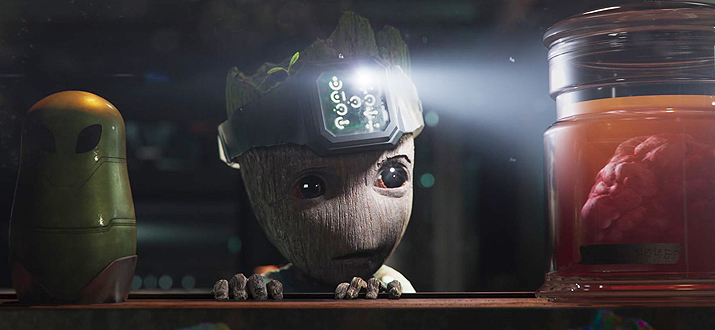 Вскоре после пробуждения Грут находит инопланетное существо, которое способно менять свою внешность. Новый знакомый учит Грута танцевальным движениям, но их дружбе не суждено продлиться долго.