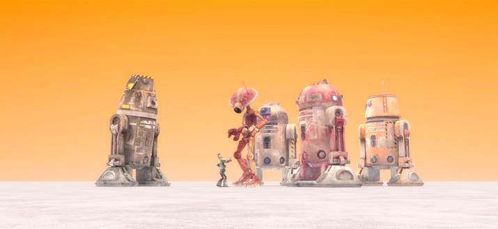 Все хуже и хуже сначала тупые серии про этих недопадаванов, теперь про дроидов(