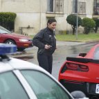 Косяк - 26:38 - фургон уехал, а в отражении витрины он все еще едет за автомобилем копов.