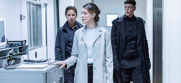 Эта короткостриженая милитаристка похожа на предводительшу мусорщиков, ту сто вызывала вертолет в оригинальных ходячих.